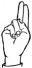 На ћирилици написано МАРИЈА БУДИМИР састоји се из 13 слова [?]. Исписано ћириличном једноручном азбуком за глувонеме: